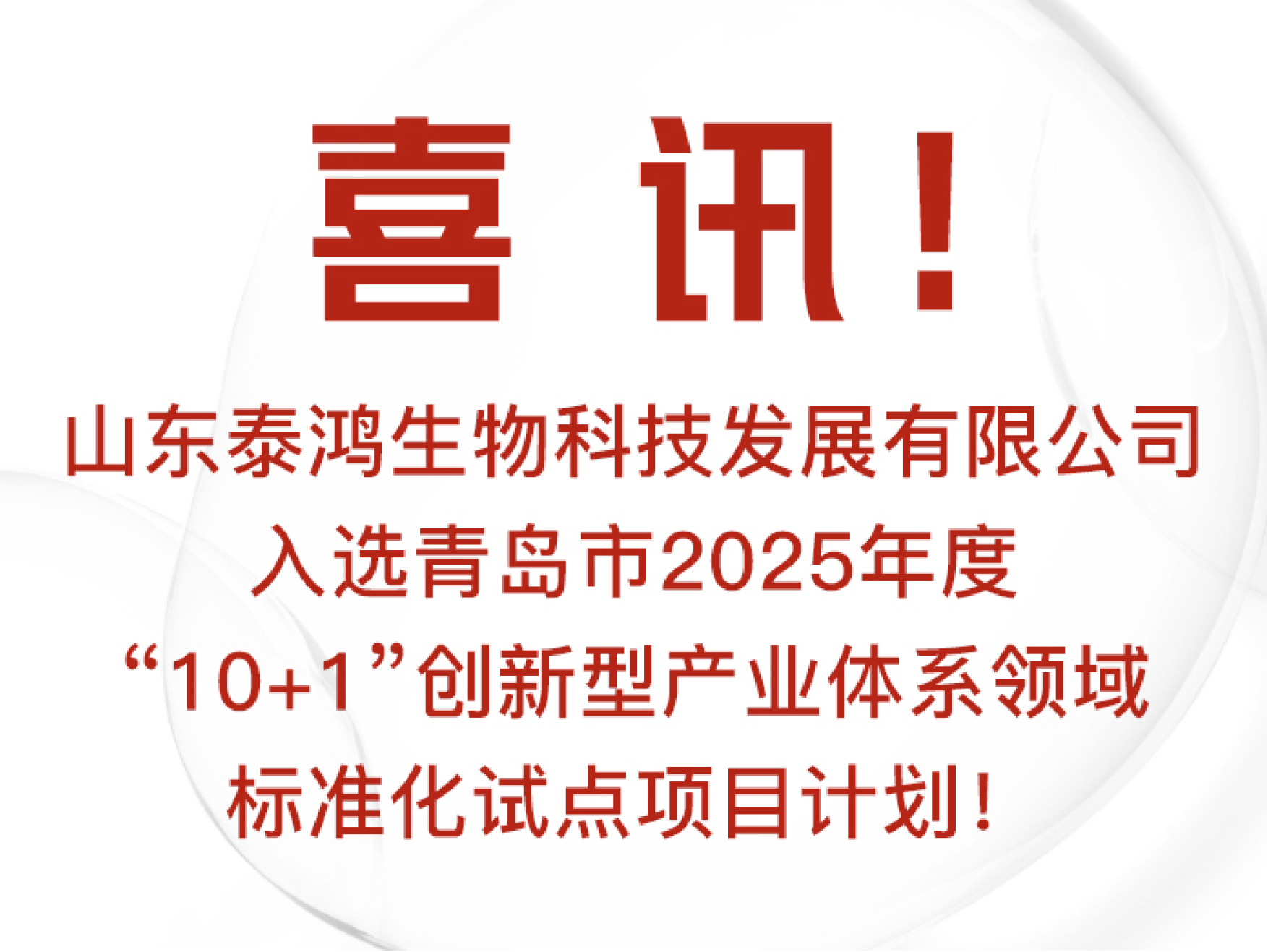 喜讯I泰鸿生物入选青岛市2025年度“10+1”创新型产业体系领域标准化试点项目计划